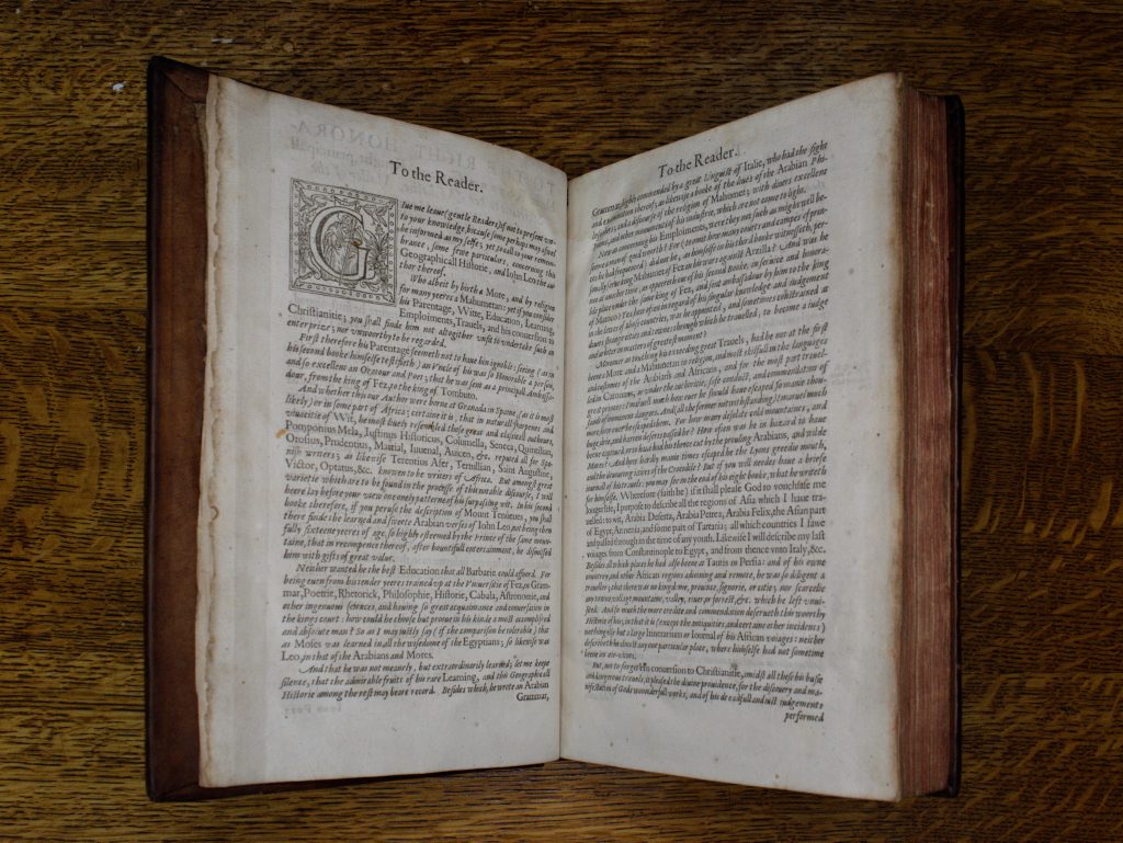 A Geographical Historie of Africa, Written in Arabicke and Italian by Iohn Leo a More, Borne in Granada, and Brought Vp in Barbarie, London, 1600. Queen’s Sel.c.159