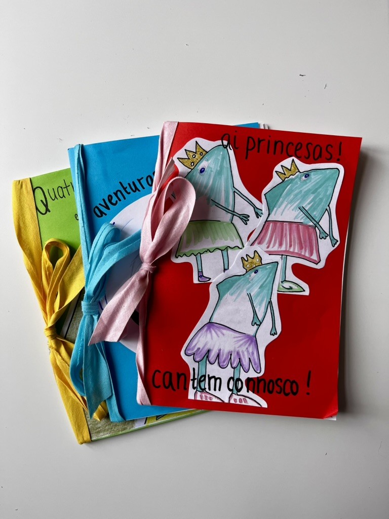 Having successfully organised a month-long residency with the wonderful team at the Casa da Esquina, I had the pleasure of working with three classes in two different schools, the Escola da Lousã and the Escola Martim de Freitas in Coimbra. All students participating got fully involved in every task presented and, by the end of each session, every group was up performing their translated lyrics to a melody (or rhythm) of their choosing! After each session, I collated all the materials produced by the students into an individual, hand-made book for each class, complete with translation, illustrations, and an audio recording of the entire song. Although it was challenging for me to weave stories of popcorn-eating ducks, existential dreams, rain-soaked princesses, and a talking pencil-friend into coherent stories, I couldn’t be prouder of the creativity and enthusiasm shown by each and every student and I hope that they are equally as proud with the books upon receiving them.