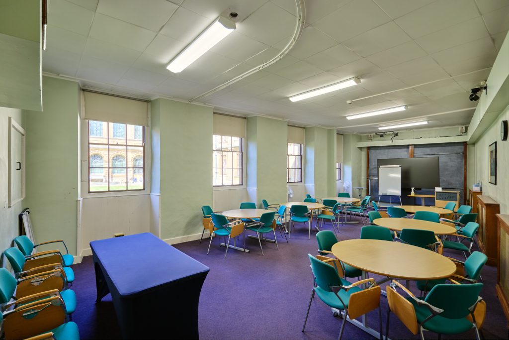 The meeting rooms at Queen’s seat from 10 to 110 delegates. These range from a contemporary light auditorium to exquisite 16th century wood-panelled, Persian-carpeted board rooms. For large conferences we have a range of syndicate rooms. For summer schools we have additional classroom spaces for teaching small classes.